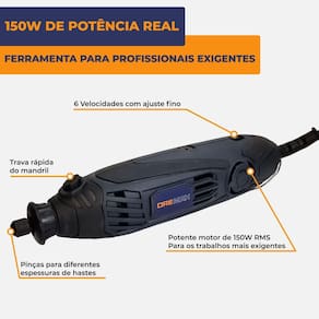 Micro retífica profissional 150w com chicote suporte e 500 acessórios dremax Você está cansado de ferramentas que não entregam o que prometem Precisa de precisão, potência e variedade para realizar trabalhos minuciosos em diferentes materiais A micro retífica dremax mr200 é a ferramenta ideal para quem exige mais da sua oficina, do hobby ou do trabalho profissional. Com 150w reais de potência e 500 acessórios inclusos, ela lixa, corta, grava, polimenta, perfura e muito mais com extrema qualidade e acabamento fino. Por que escolher a mr200 dremax - potente motor de 150w rms: performance de verdade sem quedas de rotação - 6 velocidades variáveis: controle total entre 8.000 a 30.000 rpm - eixo flexível chicote : leveza e precisão para detalhes finos - suporte de bancada incluso: liberdade para trabalhos fixos e contínuos - acompanha 500 acessórios: variedade para todas as tarefas madeira, metal, vidro, pedra, plástico, borracha, couro... - organizador incluso: mantenha os seus acessórios à mão e bem guardado - mandril com trava rápida e pinças ajustáveis : agilidade e adaptação para diversas hastes Inúmeras aplicações: - corte de precisão em metais e plásticos - gravações artísticas em madeira e vidro - polimento e acabamento em joias - lixamento detalhado de cantos e curvas - restauração de objetos delicados - modelismo, artesanato, bijuteria e marcenaria ou hobby A dremax atende ambos Não importa se você é um artesão, ourives, marceneiro ou apenas apaixonado por criar: a dremax mr200 é a solução versátil que resolve as frustrações de quem precisa de acabamento perfeito sem esforço. Itens inclusos - 1 micro retífica dremax - 1 eixo flexível chicote - 1 suporte de bancada - 145 tubos de lixa 12,7mm 1/4 pol. grão 60 - 145 tubos de lixa 6,4mm 1/8 pol. grão 60 - 4 pinças 1.6, 2.4, 3.0 e 3.2mm - 9 brocas 1.5mm 3x 2.4mm 4x 3mm 2x - 10 discos de corte 32mm reforçados - 125 discos de corte 22mm - 20 rebolo abrasivo 20mm grão 220 - 1 disco de borracha para polir 20mm - 2 pontas montadas carboneto de silício verde - 3 pontas montadas óxido de alumínio laranja - 2 discos de feltro 25,4mm - 2 discos de feltro 12,7mm - 2 pontas de feltro 10mm - 1 roda de pano com costura - 1 disco flap com haste grão 80 - 3 pontas diamantadas - 2 suporte para discos de corte - 1 suporte para disco de polimento - 1 suporte para tubos de lixa 1/4 - 1 suporte para tubos de lixa 1/8 - 2 escovas de nylon - 1 escova de metal - 2 escovas de latão - 1 frasco com pasta de polimento - 1 chave de mandril - 1 pedra de amolar - 1 organizador para acessórios - 1 caixa embalagem de papelão Um ou outro acessório pode variar de acordo com o lote Faq - dúvidas frequentes 1. Quais materiais posso trabalhar com a mr200 Madeira, metais, mdf, plástico, vidro, borracha, couro, porcelanato, aço inox, gesso, cerâmica, granito, mármore e muito mais. 2. A micro retífica é bivolt Não, verifique a voltagem disponível no anúncio 110v ou 220v, conforme o modelo disponível . 3. O eixo flexível é removível Sim você pode usar com ou sem o eixo flexível. Basta conectar ou remover conforme a necessidade do trabalho. 4. Posso usar acessórios de outras marcas Sim a dremax é compatível com acessórios padrão universal diâmetros de 1.6mm a 3.2mm . É indicada para uso contínuo Sim o motor de 150w permite uso prolongado com segurança, mas recomendamos pausas periódicas em uso contínuo de alta rotação.