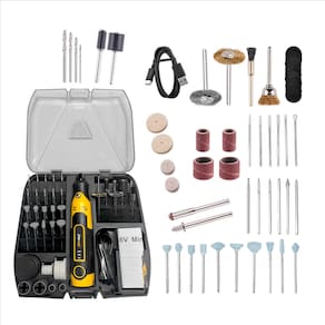 1 Mini Retífica Portátil 10 Agulhas de esmerilhar 10 Cabeças de esmerilhar 2 Rodas de lã grandes 2 Rodas de lã pequenas 20 Discos de lixa 4 Anéis de lixa 4 Hastes de conexão 1 Mandril 1 Fresa pequena 1 Escova de nylon 1 Escova de aço 1 Escova de cobre 1 Cabo USB-C 1 Manual de instruções
