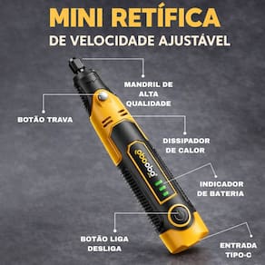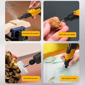 Compacta, leve e sem fio, ela foi desenvolvida para trabalhos de precisão em diferentes materiais, permitindo realizar cortes, lixamentos, gravações e polimentos com controle e eficiência.