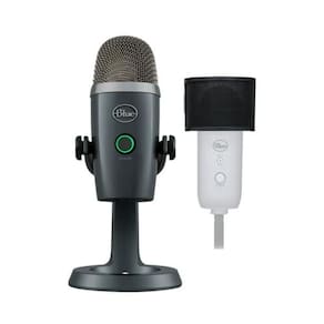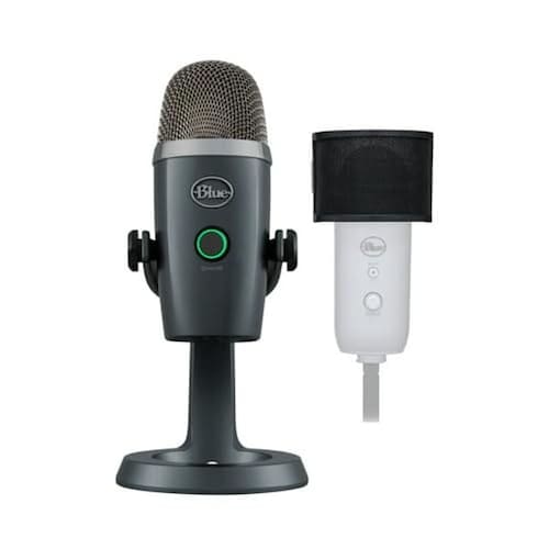 pacote inclui: Blue Yeti Net Microfone USB Premium Ano (cinza sombrio) e filtro pop (grande) para uso com gravação, podcasting e streaming