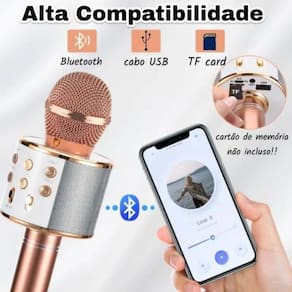Alto-falante Embutido: O microfone vem com um alto-falante embutido, permitindo que você se conecte a qualquer dispositivo com Bluetooth para uma experiência sonora incrível.