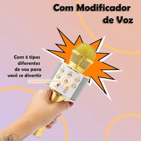 Microfone bluetooth karaokê . Ws-858 A última foto do anúncio visto apenas pelo computador , é um vídeo explicando todas as funções dos botões para você aproveitar ao máximo e se divertir com o microfone e todas sua família Diversão para crianças e adultos. Lembrando, é um microfone de brinquedo e não um microfone profissional Orientação complementar O microfone depois de ligado tem duração de uso entre 5 a 8 minutos, sendo desligado automaticamente após esse período para preservação da bateria, haja vista ser utilizado por crianças que poderiam deixa-lo ligado. Caso deseje que fique ligado de forma ininterrupta, orientamos ligar o microfone no bluetooth. O aparelho é a bateria e o produto só é carregado para teste. Quando ele chegar até você, o carregue por aproximadamente 4h para o total aproveitamento do seu produto. A duração da bateria é por volta de 3h de uso. Nós agradecemos a preferência e ficamos à disposição. Funções: Microfone; Possui 5 opções de voz através do botão rec ; Karaokê conectando com o bluetooth no spotify, youtube, etc ; Caixa de som; Gravador conectando um pen drive, ele grava o que você fala ; Rádio. Especificações: Modelo: ws -858 Material: abs shell Tamanho do item: aprox. 23cm x 7cm x 7cm Potência de saída: 5w Tensão de carregamento: dc 5v = 1a Faixa de frequência: 100hz-10khz Capacidade da bateria: 1800mah Nível máximo sonora: 115db 1khz thd1% Modo de reverberação: reverberação de som de eco Fonte de alimentação: bateria de íons de lítio embutida Tempo de carregamento: cerca de 4 horas Tempo de trabalho: cerca de 4 horas Conteúdo da embalagem: 1 microfone na cor escolhida; 1 cabo de carregamento usb. obs: não acompanha a fonte de carregamento, somente o cabo . do vendedor: 30 dias Homologação Inmetro: IP-BRI-0169/2022-01 Marca: Não Informado