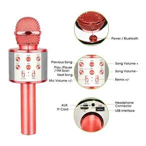 Microfone bluetooth wster ws-858 sem fio karaokê - rose gold Este microfone portátil conta com uma caixa de som embutida nele, com ele você pode simplesmente cantar e ter sua voz amplificada nos alto-falantes assim além de poder sincronizar seu celular ou notebook via bluetooth e reproduzir um playback e cantar junto, ou simplesmente deixar ele tocar como uma caixa de som portátil. Existe ainda a opção de conectar este microfone em uma caixinha de som ou caixa amplificada através do cabo auxiliar p2 e cantar alto pra valer com o som saindo em alto-falantes externos potentes. Operação dos botões segure on/off pressione: troca de modo pressione: o botão de música anterior no modo mp3. no modo selfie, pressione o mesmo botão para ativar a função selfie somente para celulares com sistema android e ios pressione: botão reproduzir /pausar pressione: o botão on/off do microfone para desligar segure: para função de repetição no cartão tf + aumentar o volume - diminuir o volume - gravação com o celular: conecte o fio de gravação: insira o plugue micro do fio de gravação no microfone abra o app karaokê no celular, para usar o app música kugou ou outros aplicativos de gravação, selecione sua música que deseja, grave a música de acordo com o método de canto teste e salve a música: opere de acordo com as instruções do app karaokê. - karaokê sem fio: fornecimento de energia: segure o botão power para ligar o microfone ative a conexão sem fio do celular, clique para conectar, conexão bem-sucedida se o tom de alerta for produzido ajuste o volume do som do microfone e a reverberação para o nível adequado. inicie o modo karaokê Características: - potência de saída: 5w; - faixa de frequência: 100hz-10khs; - nível máximo sonora: 115db 1khz tdh1%; - modo de reverberação: reverberação de efeito sonoro; - fonte de alimentação: bateria de lítio 18650 embutida; - capacidade da bateria: 1800mah; - potência de carregamento: dc5v; - cartão sd; - p2; - usb; - micro usb; - recarregável; - tecnologia bluetooth; - modificação de voz divertido; - controle de mixer. Tamanho e peso aproximadamente : - tamanho do produto: 8 x 23 x 8; - tamanho da embalagem: 10 x 23 x 5.5; - peso da embalgem: 241 g. Itens inclusos na embalagem: - 1 x microfone - 1 x cabo usb - 1 x manual Codígo da anatel: 01826-22-14479 Homologação Anatel: 025911203111 Marca: Não Informado Ean: 7896850179118