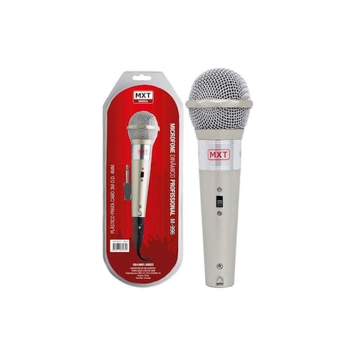 Microfone Dinâmico M-996 Plástico Prata Com Cabo Mxt Microfone para Karaokê Tipo - Dinâmico Modelo MXT M-996 Cabo 3 metros Microfone para vocal. Resposta de Frequência suave e prolongada. Plástico Prata Com Fio 3 Metros Microfone plástico Prata Cabo 3m , lacrado, com do fabricante. Marca: MXT Modelo M-996 Blister de Plastico Ideal para Karaokê Marca: Não Informado Ean: 7899471845622