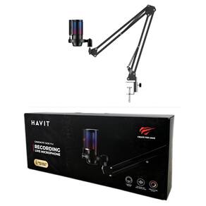 1x Microfone Gamer Condensador Usb Havit Gk50 Pro Rgb Preto