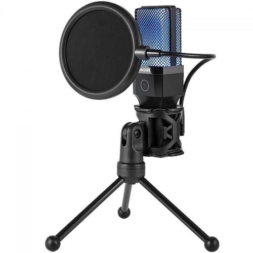 Características: - Botão touch para silenciar o microfone de forma rápida e prática - Conjunto completo com pop filter e suporte para uso em mesa - Iluminação RGB trazendo mais brilho para seu setup - Conectividade USB Tipo-C com cabo removível