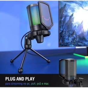 Microfone Gamer Rgb Fifine Condensador Multi-padrão Ampli Game A6V Lançamento FIFINE Microfone Ampligame Rgb Gamer 2022 Mod A6V Um excelente microfone com ótimo acabamento O melhor custo-benefício Lançamento 2022 Acompanha: Microfone com Pop Filter acoplado com elásticos para reduzir ruídos Cabo USB Tipo C - 1,8 metros Tripé Manual obs. Pode ser também em montagens com braço articulado, que não acompanha este produto Sensor tap-to-mute com indicador de status Rgb Use a funcionalidade de toque-para-mudo de áudio sensível ao toque, juntamente com a ajuda do indicador de status de mic RGB. Se a luz estiver acesa, o microfone está ativo, se a luz estiver desligada, o microfone é silenciado, basta tocar na parte superior do microfone. O botão de volume está escondido na parte inferior do microfone. Controle de ganho conveniente, ajuste facilmente a sensibilidade do microfone girando o mostrador na parte inferior do microfone. Ele permite que você ajuste o volume de entrada do microfone para uma posição que você se sente confortável Built-in montagem de choque antivibração Isole o microfone e suprima o som de ruídos e solavancos não intencionais com a suspensão por elásticos. Haverá um filtro pop no pacote Você precisa alinhar a baioneta na montagem de choque e pressionar levemente para completar a instalação. O filtro pop ajudará a suavizar alguns desses ruídos percussivos que pontuam periodicamente o seu discurso. Multi-programa compatível Um microfone plug and play para streaming, podcasts, games compatíveis com pc, ps4, ps5 e . Qualidade de voz clara com som excelente para uma comunicação clara. Adequado para os amantes do jogo, produtores de vídeo e produtores de áudio. SMART NEW TECH FIFI-A6V-PRETO Marca: Não Informado Ean: 7897441550088