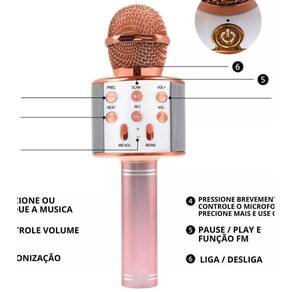 Microfone karaoke bluetooth: dê vida às suas canções favoritas Esse microfone é realmente incrível Ele tem caixa de som embutido, não precisa estar conectado a nenhum outro aparelho para funcionar. Possui controle de volume e controle de eco. Tem também a função de alteração de voz, com apenas um click, sua voz pode ficar bem fininha ou bem grossa. É muito divertido Funciona também como uma mini caixa de som. Você pode conectar por bluetooth o seu celular ou qualquer outro aparelho compatível e reproduzir o som. Imagine só, você coloca a sua música preferida para tocar e pode cantar ao mesmo tempo seja um astro cante e brinque a qualquer hora e em qualquer lugar