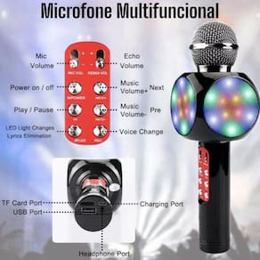 Se você gosta de cantar no chuveiro mas quer começar a treinar sua voz, ou até mesmo ter momentos de pura diversão com os amigos e família, este é o microfone perfeito. Basta carregar a sua bateria interna entrada v8 de carregamento , ligar e sair cantando. Além disso você pode até mesmo gravar o que está cantando e mostrar todo o seu talento pra pessoas.