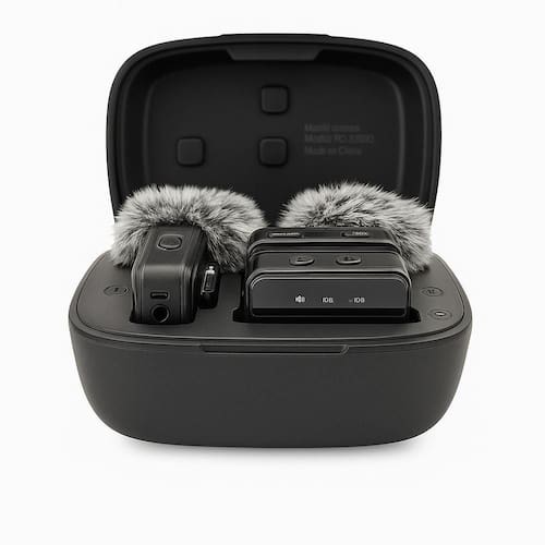 O Sistema de Microfone Lapela Sem Fio de Canal Duplo oferece captura de áudio limpa e estável com até dois microfones simultâneos. Ideal para entrevistas, lives, videoaulas e gravações externas, mesmo em ambientes com ruído. Totalmente portátil, com estojo recarregável e conexão rápida via USB-C, é compatível com celulares, filmadoras, câmeras DSLR e notebooks.