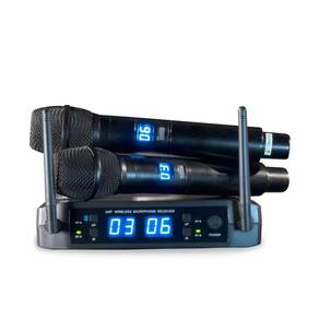 Microfone leson ls916 s/fio duplo caracteristicas: pll dual system multi frequencias - 32 frequências, sendo 16 selecionáveis por canal transmissores do tipo bastão com display lcd alimentação: 2 pilhas 1. 5v aa recarregaveis via usb no bastão capsula dinâmica uniderecional cardioide com display lcd ir sync sincronização por infravermelho faixas de freqência selecionáveis: 630 a 660 mhz
