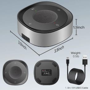 Microfone Mesa Com Cabo Usb Para Conferência Viva Voz Jounivo O microfone de mesa omnidirecional para conferência jounivo jv801, é indicado para reuniões e software de bate-papo, perfeito para chamada de vídeo, bate-papo de voz, ouvir música, reunião, streaming , etc. Pequeno, leve e fácil de transportar, possui interface usb e é adequado para utilização em notebook e desktop. Com design arrojado, o jounivo jv801 é plug and play, compatível com windows xp/windows 7/8/10 e sistema os. Alto-falante embutido e placa de som O microfone para conferência com viva-voz jounivo jv801 possui alto-falante embutido, e microfone omnidirecional de alta sensibilidade, adequado para salas de reuniões de 20-30 metros quadrados, 360 graus para captar sons, o raio eficaz de captação do som é de 3 metros. Chip de cancelamento de eco embutido Esse versátil microfone possui um prático chip de cancelamento de eco, proporcionando uma captação de áudio clara e estável. Possui comunicação instantânea de alta eficiência, com uma distância mínima. O volume poderá ser ajustado durante a chamada de vídeo. O jounivo jv801 conta também com um botão mute para interromper o áudio do microfone quando desejar. Itens incluídos: 1x microfone para conferência jounivo jv801 1x cabo usb com 1,8m 1x manual do usuário em inglês Padrões polares: omnidirecional Comunicação: fio Transdutor: microfone condensador Estilo: tabletop mesa Jounivo model: jv801 Certificado: ce,rohs Diafragma: s-mall Utilização: microfone da conferência Captação: 360 graus Conexão: usb Saída auxiliar: 3,5mm p2 Potência do alto falante: 3w Cabo usb: 1,8m Dimensões: 10 x 10 x 3,8cm Peso: 237g Homologação Anatel: 005491708855 Marca: Não Informado
