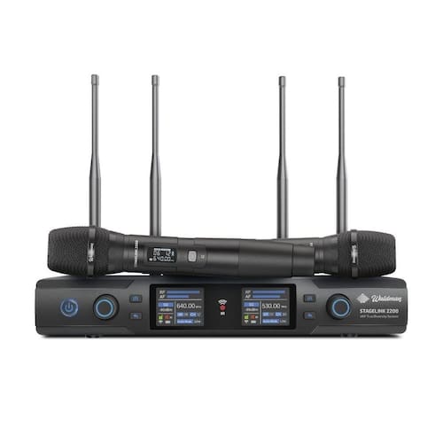 Microfone Waldman Sem Fio Duplo Wsl-2200/530 O Waldman WSL-2200 StageLink é um sistema de microfones sem fio desenvolvido para quem busca liberdade de movimento, praticidade e qualidade de áudio em apresentações , igrejas, palestras, eventos e . Equipado com duas transmissões independentes, o sistema oferece microfones com ótima resposta de frequência e estabilidade de sinal, garantindo clareza sonora e evitando interferências. O design robusto aliado à tecnologia StageLink proporciona conexão confiável e alcance eficiente, ideal para quem precisa de mobilidade no palco. Características principais: - Sistema sem fio duplo 2 microfones Com 4 antenas - Faixa de frequência: 530 - 590 Mhz - Tecnologia StageLink para maior estabilidade e qualidade de transmissão - Alta fidelidade sonora, ideal para voz falada ou cantada - Alcance de operação de até 100 metros dependendo do ambiente - com fácil ajuste de frequência e indicadores de status - Construção robusta e ergonômica dos microfones - Ideal para eventos, igrejas, escolas, bandas e locuções Conteúdo da Embalagem: - 2 Microfones sem fio Waldman WSL-2200 - 1 StageLink - Fonte de alimentação - 2 Pilhas - Acessórios de conexão - Maleta para transporte Homologação Anatel: 043182416293 Marca: Não Informado Ean: 7898467729243