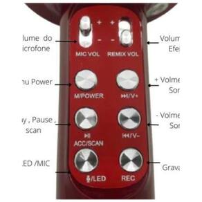 Microfone s/ fio perfeito para festas e comemorações Microfone sem fio bluetooth karaokê lelong Se você gosta de cantar no chuveiro mas quer começar a treinar sua voz, ou até mesmo ter momentos de pura diversão com os amigos e família, este é o microfone perfeito. Basta carregar a sua bateria interna entrada v8 de carregamento , ligar e sair cantando. Além disso você pode até mesmo gravar o que está cantando e mostrar todo o seu talento pra pessoas. Nosso microfone já é equipado com caixa de som própria, não precisa estar conectado a nenhum outro aparelho para funcionar, mas se quiser conectar em outro auto-falante por exemplo também é possível através de um cabo auxiliar. Tem também a função de alteração de voz, com apenas um click, sua voz pode ficar bem fininha ou bem grossa, ou seja, com o microfone karaokê é diversão garantida em qualquer hora e lugar. Funciona também como uma mini caixa de som. Você pode conectar por bluetooth o seu celular ou qualquer outro aparelho compatível e reproduzir o som. Cante junto com seus artistas preferidos ao mesmo tempo Principais características Bluetooth Modo gravação Rádio fm Entrada cartão sd Entrada usb Entrada fone de ouvido Ajuste de voz Ajuste de volume Aplicativo karaokê Potência de saída: 5w Faixa de frequência: 100hz-10khz Nível máximo sonora: 115db 1khz tdh 1% Capacidade da bateria: 1800mah Fonte de alimentação de carga: dc-5v Itens inclusos 1 microfone karaokê bluetooth com caixa acoplada 1 cabo usb 1 cabo p2 1 manual do usuário ==================================== Dúvidas frequentes - conecta em outras caixas de som Sim através de um cabo auxiliar, que já vem incluso. - o produto é resistente Trabalhamos apenas com produtos com material de altíssima qualidade, durabilidade e procedência. Homologação Anatel: 025931304858 Marca: Não Informado