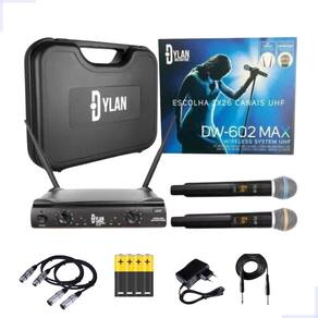 Microfone Sem Fio Duplo Dylan Dw602 Max Uhf + 2 Cabos Xlr