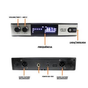 MICROFONE SEM FIO DYLAN UDX02 UHF C/2-MICROFONE BASTÃO C/DISPLAY DIGITAL