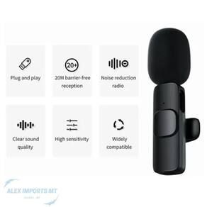 Microfone sem fio lapela para gravar podcasts Microfone lapela duplo sem fio 2,4ghz recarregável lightning - alta qualidade - omni-direcional - voz clara e ótima captação - captação 360 graus - longo alcance 20-30 metros - plug-and-play - bateria com até 5h de duração Características: 1. Mão-livre, pode ser para conversar, reunião de vídeo, gravação de música, tiktok, youtube, lives, streamings, etc. 2. Um grampo giratório de 360 graus para você grampeá-lo ao colar, ao laço ou ao bolso facilmente Especificação: - freqência: 2.4ghz - tensão de entrada: dc4.8 - 5.4v - conexão: lightning - capacidade bateria: 80mah cada - distância de transmissão: 30-50metros - tamanho do microfone: 622328mm - tamanho do : 45277mm - faixa de frequência: 20hz-20khz - sensibilidade:-30db 11db - snr: 60db - impedância: = 2.2k ohm Instruções de uso: 1. Conecte o no seu aparelho 2. Pressione o botão do lapela por 2 segundos 3. Luz começará a piscar alternando vermelho e verde 4. A luz ficará estática apenas verde 5. Pronto microfone conectado Shp mt cba Mlv Homologação Anatel: 078531705567