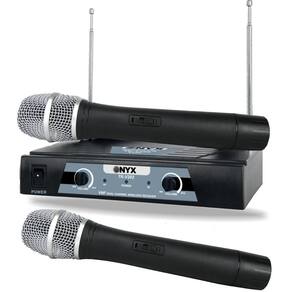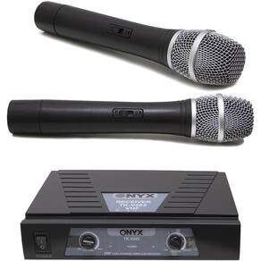 Microfone Sem Fio Tk V202 Vhf Onyx Microfone TK-V202 Onyx, possui 2 microfones wireless de mão para uso geral, prático e versátil um modelo VHF, com controle de volume individual para frequência A e B, LED indicador ON/OFF, LEDs indicadores de funcionamento e uso de canal A e B. Especificações - Marca: Onyx - Tipo: Wireless - Modelo: TK-V202 - Frequência: VHF 174MHz 216 MHz - Forma de Modulação: FM - Estabilizador de Frequência: +- 5KHz - Resposta de Frequência: 60Hz 15KHz - Nível de Saída de Áudio: 0 200MV Freestanding - Temperatura de Trabalho: -2060C - Tensão Entrada : 110/220V/60Hz - Tensão Entrada do Microfone: DC 9V - Distorção Harmônica: 85Db - Potencia Max. Saída: Homologação Anatel: 080281811799 Marca: Não Informado
