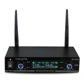 Microfone , que dispensa a dependência de fios para garantir um ótimo funcionamento do seu som local. Informações Técnicas: Ponto de frequência: 512 - 562 MHz Razão de sinal-ruído de 90dB garante um fundo sem barulhos. Resposta da frequência de 50Hz - 20,000Hz Distorção harmônica do sistema 0,1% Display LCD de alta resolução Alcance: 60m Itens Inclusos: 2x Microfones sem fio 1x com display LCD 1x Fonte de carregamento bivolt Homologação Anatel: 110052213346 Marca: Não Informado