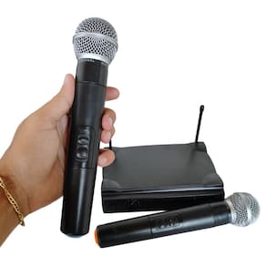 O microfone sem fio duplo profissional é um sistema de captação de áudio que inclui dois microfones individuais, ambos operando sem a necessidade de fios físicos para se conectar ao receptor. Sistemas projetado para oferecer maior flexibilidade e liberdade de movimento aos usuários em ambientes profissionais, como palcos de teatro, shows, eventos corporativos, apresentações ao vivo, entre outros.
