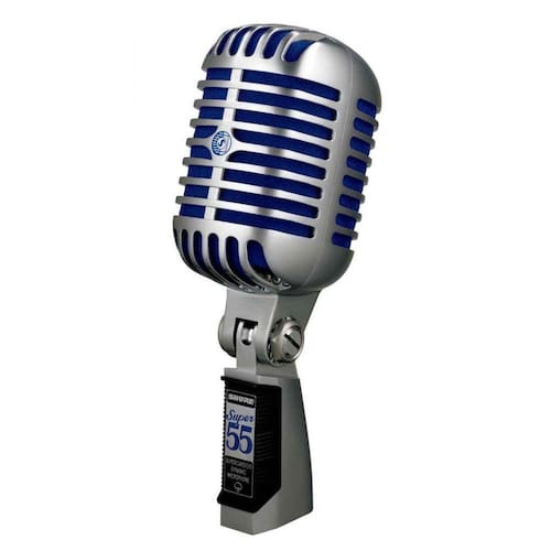 O microfone Shure Super 55 possui o design vintage do icônico microfone vocal com resposta de frequência sob medida para som vocal natural e locução. Microfone com suporte para aplicações de voz ao vivo e em estúdio; Cápsula dinâmica padrão polar supercardioide; Acabamento em metal die-cast cromado acetinado e espuma azul vibrante; O Super 55 inclui suporte articulável integrado, bolsa com zíper e manual de usuário;
