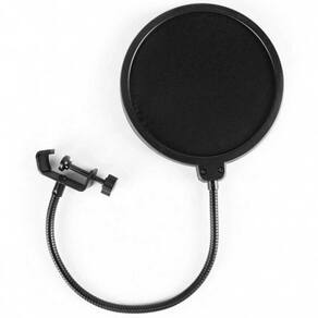 Acessórios: Espuma, filtro pop, base de metal, suporte de braço articulado de 3 seções, cabo USB, adaptador USB-C