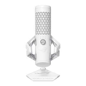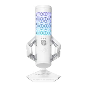 Microfone USB para jogos ASUS ROG Carnyx (cápsula condensadora de 25 mm, 192 kHz/24 bits, cardióide, filtro passa-alta, filtro pop embutido, suporte metálico, mudo de um toque, Aura Sync RGB) - Moonlight White -