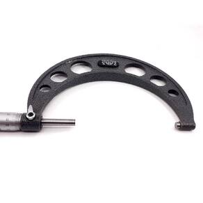 Sistema de funcionamento com catraca. Arco em ferro fundido nodular. Faces de medição em metal duro lapidadas. Protetor termo isolante. Medidas mm : 100 - 125. Resolução mm : 0,01. Exatidão mm : 0,003.