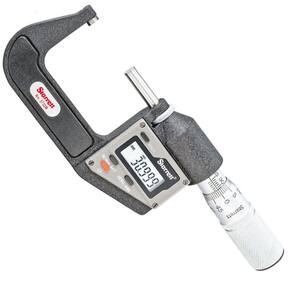 Serve para medir espessura, altura, largura e profundidade de peças pequenas, em milímetros ou polegadas. - Características: :: Pontas de contato de metal duro.:: Barra-padrão de ajuste a partir de 0-25mm:: Trava tipo alavanca e catraca, exatidão ±0,003mm - Especificações Técnicas: :: Capacidade: 0 - 25mm / 0 - 1:: Resolução: 0,001mm - 0.00005:: Exatidão: ± 0,002mm - ± 0.0001 - Conteúdo da Embalagem: :: 1 Micrometro Externo Digital 0-25mmMarca: StarretCódigo: 79032
