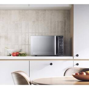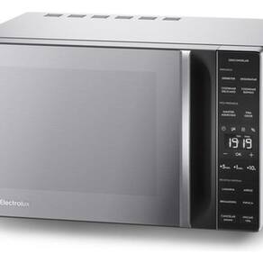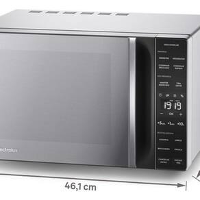 Micro-ondas de bancada, capacidade de 23 litros, potência de 1100W, tensão 220V, acabamento em inox, dimensões compactas (29x46,1x35,2 cm), peso 11,40 Kg, puxadores embutidos, sem função grill.Função Grill