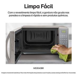 Características Gerais do produto Micro-ondas de bancada cometros capacidade de 30 litros, potência de 1250W, tensão 127V, construção emetros metrosetal, plástico e vidro, puxador externo.