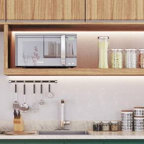 Acabamento espelhado, Painel digital, Menu fácil com opções pré-programadas.Função Grill