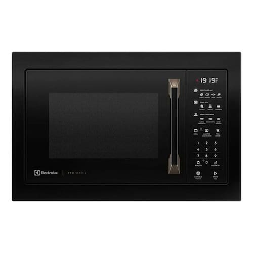 Micro-ondas de embutir Electrolux Pro Series com capacidade de 34 litros, grill, potência de 1450W, tensão 127V (110V) e construção em aço. Dimensões: 38,8 x 59,5 x 44 cm. Possui puxador externo.Função Grill