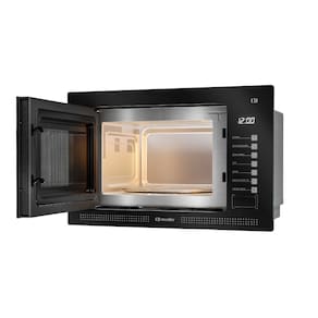 Micro-ondas de embutir, 25 litros de capacidade, 900W de potência, 5 níveis de potência, função descongelar por tempo ou peso, painel digital com toque, timer com aviso sonoro, luz interna.Função Grill