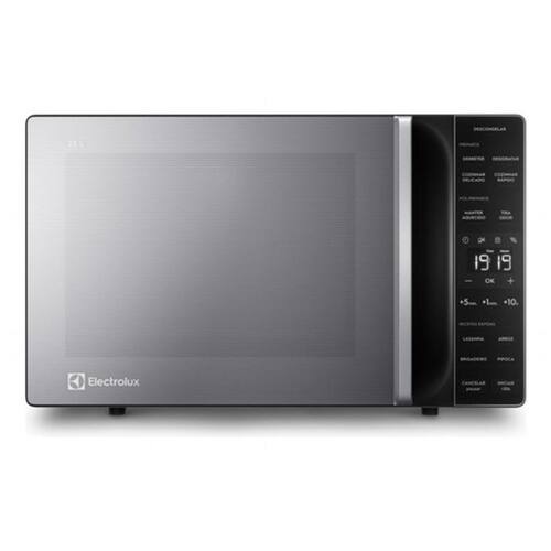 Micro-ondas de bancada com capacidade de 23 litros, cor inox, acabamento em aço, plástico e vidro. Potência de 1100 W, tensão elétrica de 220V, descongelamento assistido. Dimensões: 29 cm (A) x 46,1 cm (L) x 35,2 cm (P). Puxador embutido.Função Grill