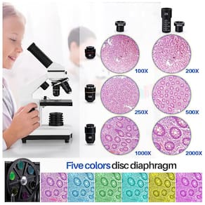 Ocular de alta ampliação WF25X sozinha ou com lente 2X, cooperar 4x 10x 40x lentes objetivas, microscópios biológicos oferecem 6 configurações de ampliação, 100X, 250X, 1000X, 200X, 500X, 2000X. Microscópios monoculares de foco grosso e fino com estrutura de metal sólido e botões de foco fino grosso garantem detalhes e ajuste preciso do foco, criando uma imagem mais clara e nítida. Sistema de Iluminação Dupla LED superior e inferior simultaneamente em campo claro, um condensador de lente única de 0,65 NA com diafragma de disco, fornece imagens com correção de cores de alta resolução. Acessórios completos Ele vem com adaptador de telefone, obturador de fio, 10 acessórios operacionais, conjunto de lâminas de microscópio de 15 peças, bolsa de transporte. Atenda a todas as suas necessidades de observação biológica. Ferramenta educacional prática Este microscópio biológico 100X 2000X foi projetado para ajudar estudantes, crianças, adultos, iniciantes, cientistas amadores, amadores, explorando o fantástico mundo da vida. É ideal para escola, laboratório ou ensino em casa, uma a uma instrução.