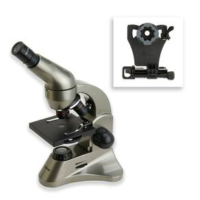 Microscópio composto para estudantes Carson Beginner 40x-400x com adaptador de digiscópio universal para smartphone e aplicativo de telefone CarsonCam (MS-040SP)