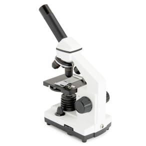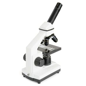 Celestron — Celestron Labs — Microscópio composto de cabeça monocular — Ampliação de 40-800x — Estágio mecânico ajustável — inclui 2 oculares e 10 lâminas preparadas