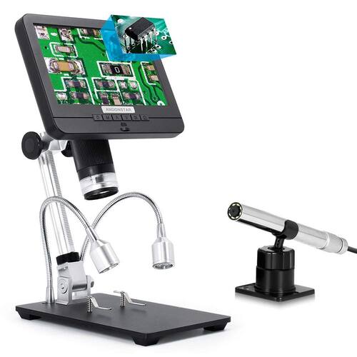 - Imagem em imagem e tela ajustável de 7 polegadas: este microscópio digital Andonstar é com um endoscópio, atinge a função pic-in-pic no microscópio. Você também os usa separadamente. A tela pode ser girada em 270°, oferecendo um ângulo de visão confortável.