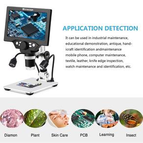- Tela LCD giratória de 7 polegadas - Trabalhando em conjunto com uma câmera de foco ultraprecisa de 12 megapixels e imagens de alta definição 1080P, este microscópio LCD cria imagens e vídeos de alta qualidade e oferece uma incrível experiência de observação de micromundos. O design da tela giratória (270 graus) melhora a ergonomia e elimina a tensão nos olhos e no pescoço.