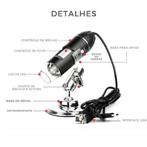 itens inclusos: - 1 microscópio digital - 1 suporte - 1 cabo usb