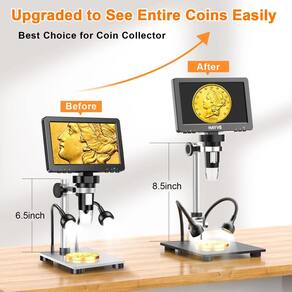 -?ATUALIZE PARA VER AS MOEDAS INTEIRAS?- Os mais novos suprimentos da coleção de moedas Havye DM9-H têm um suporte mais longo de 8,5 polegadas, então as moedas inteiras, como moedas de dez centavos, níquéis, moedas, dólares e até grandes dólares de prata, podem ser totalmente exibidas na tela sem a necessidade de instalar tubos de extensão ou levantar a tela.