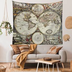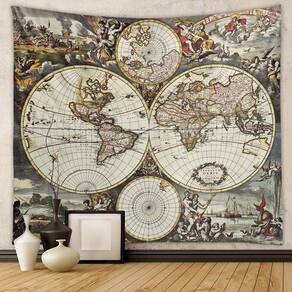 Microtecido de parede Tapeçaria World Map 150x130cm para quarto
