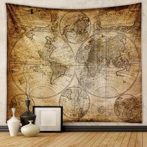 Microtecido de parede Tapeçaria World Map 150x130cm para quarto