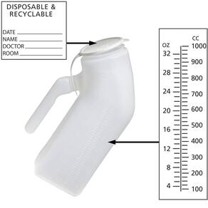 - Segura 946 ml. Nossas mamadeiras de xixi para homens são feitas para conter uma grande quantidade de urina. Confie que este mictório portátil pode conter urina suficiente da maioria das bexigas.