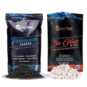 Kit mídias premium OceanTech Carvão ativado de casca de coco Premium Carbon 1L + cerâmica Bio Glass 1L