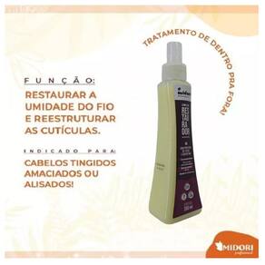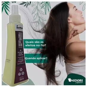 Complexo restaurador midori 250ml cabelos emborrachados anti emborrachamento complexo restaurador 250ml - midori . O complexo restaurador midori restaura a umidade do fio e reestrutura as cutículas. O complexo restaurador trata cabelos tingidos, amaciados ou alisados. Protege e nutre a fibra, mantendo a umidade. Hidrata sem deixar oleosidade nos cabelos, promovendo tratamento de dentro para fora. Proporciona brilho, maciez e suavidade, selando as cutículas dos cabelos secos e quebradiços. Reestrutura a fibra capilar dando maleabilidade e melhor penteabilidade. Modo de usar: aplique mecha por mecha sobre os cabelos lavados e retire o excesso de água com a toalha, sem tempo de pausa . Enxague bem.