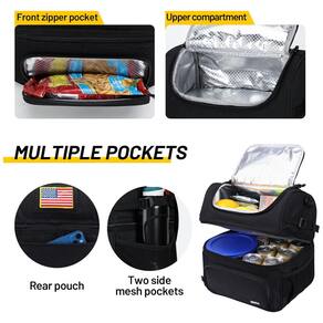 Bolsa para lancheira com 2 compartimentos Esta lancheira oferece diferentes maneiras de embalar sua comida. A seção superior seca possui uma abertura em U e puxadores de zíper duplo para fácil acesso, ideal para itens que não vazam, como frutas, salgadinhos ou tortas. A seção fria de fechamento com zíper duplo inferior envolvente e sem vazamentos é isolada com forro de papel alumínio macio, perfeita para bebidas, água, suco e afins Saco térmico isolado Espuma espessa de isolamento térmico e forro de folha de alumínio de grau alimentício trabalham juntos para manter o conteúdo frio , quente , fresco por horas Fácil de limpar. Refrigerador de alta confiabilidade Um bolso frontal com zíper para embalar utensílios e guardanapos, dois bolsos laterais de malha com alças extras ajustáveis para garrafas de bebidas e latas de refrigerante, uma bolsa traseira com fecho de fecho aderente e um porta cartões transparente, dando a você acesso fácil a tudo que você precisa para um almoço perfeito Marca: Não Informado