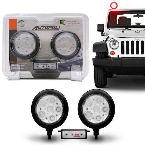 Farol redondo 6w carcaça preta - kitDescrição O farol redondo 6w possui 6 led's de longa vida últil e alta luminosidade. Amplia o foco luminoso de seu veículo, garantindo melhor sinalização e segurança.Cor do corpo: PretoCor da luz:BrancoCor da lente: TransparenteInformações técnicas: O kit farol redondo 6w possui 2 faróis + módulo de controle. O módulo de controle para faróis autopoli possui 9 efeitos de luz:- 3 efeitos strobo;- 4 efeitos safety car;- luz contínua;- efeito randômico com todos os efeitos. Potência: 12w par ; Equivalência aproximada: farol 50w; Fluxo luminoso: 1.800 lm lúmens ; Índice de proteção: ip65; Corpo em abs e lente em policarbonato; Ângulo de abertura: 15º; 120 lúmens por watts; Máximo de 5 faróis por canal; Bivolt: 12 / 24v. Tamanho: 8,0 cm. Produto fixado por parafusosCompatível com: UniversalConteúdo da embalagem: 02 faróis strobo redondo BRANCO ap808 01 módulo de controle Atenção: temos outras cores disponíveis, caso desejar, solicitar no ato da compra.Garantia: Oferecemos garantia de 90 dias para todos os produtos. Havendo qualquer anormalidade com a peça durante esse período, nos prontificaremos a substituí-la o quanto antes, basta o cliente entrar em contato com nossa central de atendimento. Foto ilustrativa Não nos responsabilizamos pelo mau uso do produto.