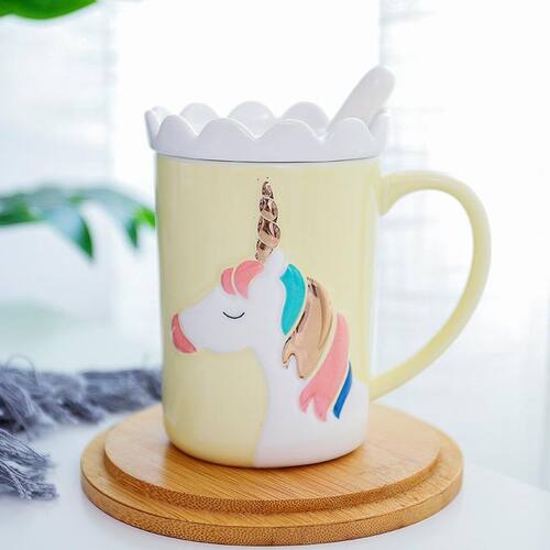 Preço razoável, durável e prático. Item mais vendido, feito de cerâmica, mais durável de usar. Portátil e leve. Belo design com padrão de unicórnio, atraente o suficiente. Adequado para copos. Veja menos